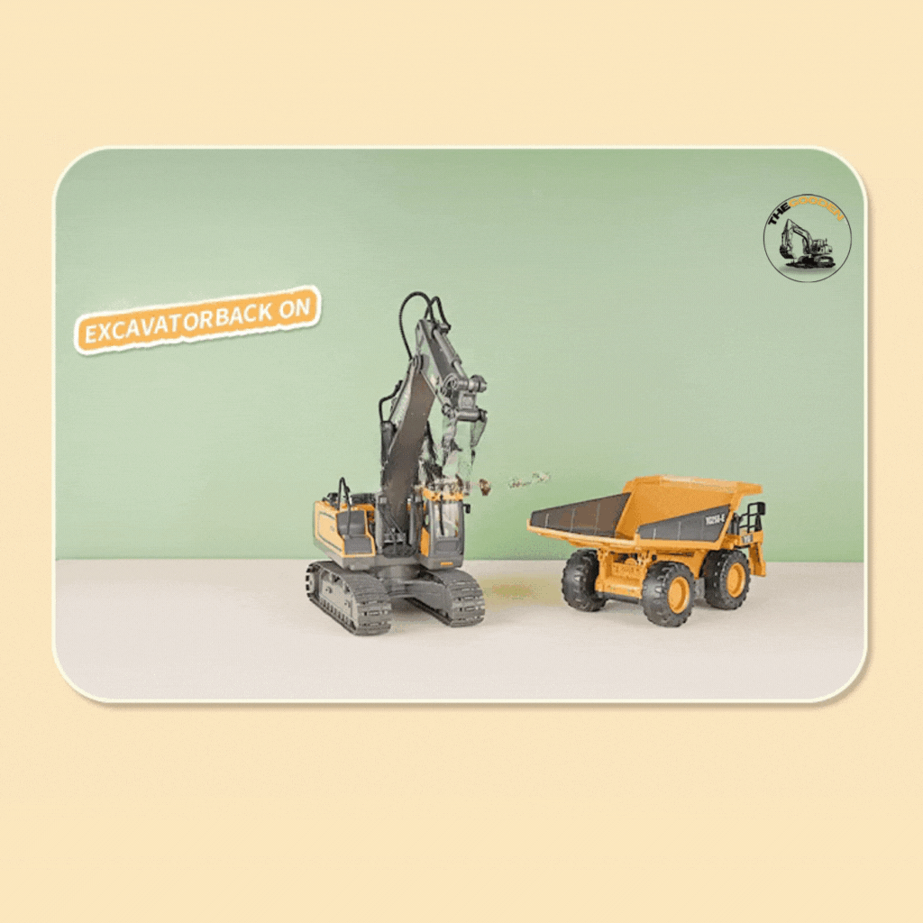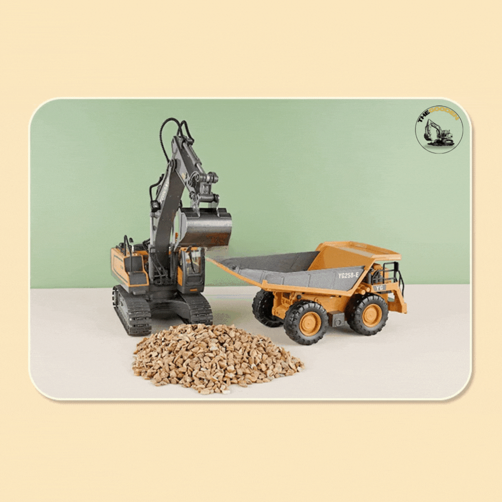 Watch the excavator and dump truck work together just like on a real construction site. The excavator scoops, lifts, and loads materials with precision, creating a truly immersive and interactive play experience.