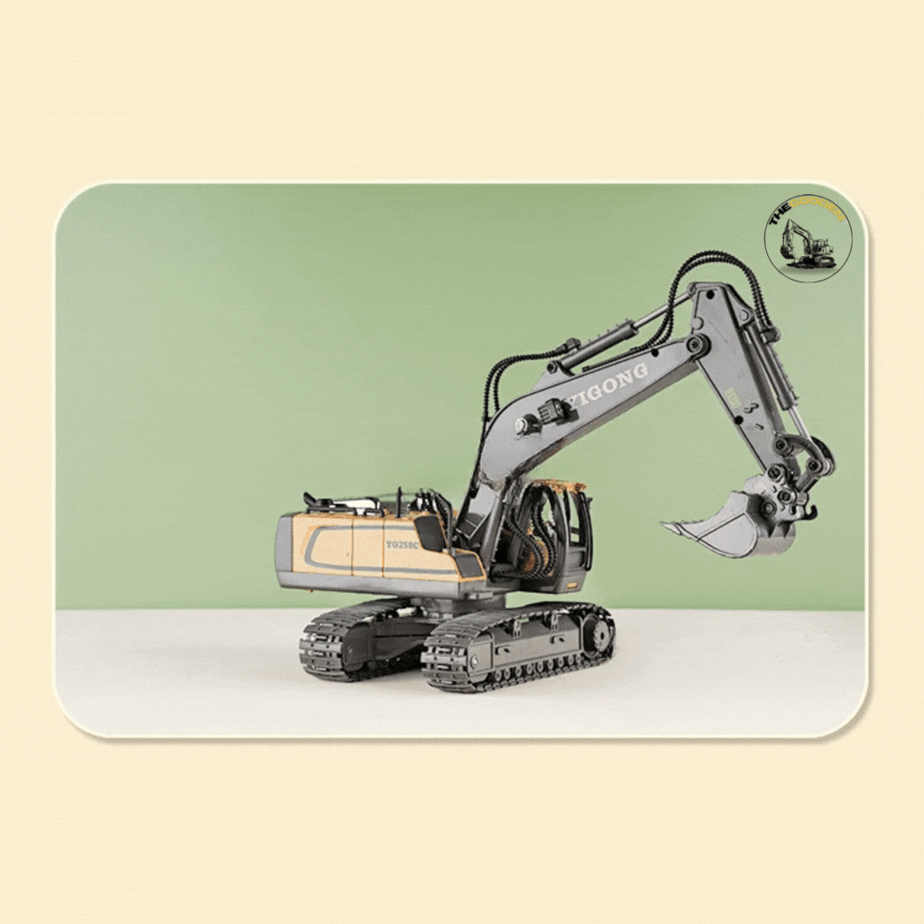 The excavator’s upper body rotates a full 360°, allowing smooth, unrestricted movement in any direction. Perfect for realistic digging, loading, and multi-angle operation just like a real construction machine.
